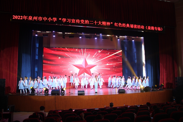 文明風11月18日訊 為學習貫徹黨的二十大精神,引導廣大中小學生和未成年人“聽黨話、感黨恩、跟黨走”,推進“扣好人生第一粒扣子”主題教育活動深入開展,11月18日,2022年泉州市中小學“學習宣傳黨的二十大精神”紅色經(jīng)典誦讀活動(泉港專場)在福師大泉港實驗中學報告廳舉行。