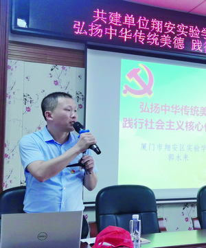 翔安區有一位熱心的教師,二十年來幫助400多個孩子順利完成學業。他還是翔安區委講師團成員,一直活躍在基層,將黨中央的最新精神傳遞到千家萬戶。他就是翔安區實驗學校教師郭水來。他曾榮登中國好人榜,還獲得諸多省市級榮譽。