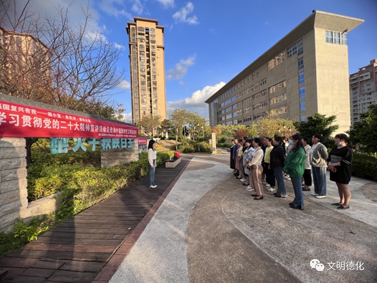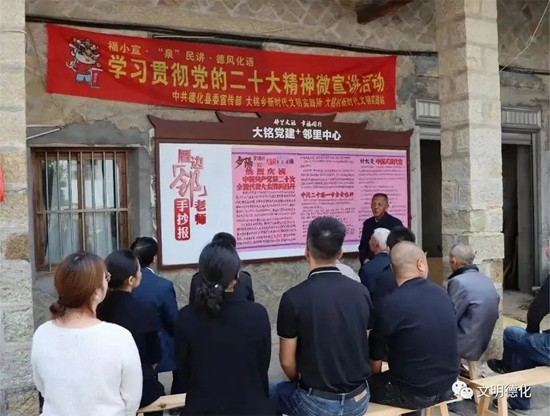 黨的二十大是在全黨全國各族人民邁上全面建設社會主義現代化國家新征程、向第二個百年奮斗目標進軍的關鍵時刻召開的一次十分重要的大會。德化縣緊緊圍繞傳播黨的創新理論首要任務,充分發揮新時代文明實踐陣地、隊伍資源優勢,結合“福小宣·泉民講·德風化語”系列主題活動,不斷探索理論宣講方式方法,通過短視頻、微宣講等形式,高質量、全覆蓋、立體式開展黨的二十大精神宣傳宣講活動,持續推動黨的二十大精神落地生根、開花結果。截至目前,全縣累計開展學習宣傳貫徹黨的二十大精神宣傳宣講活動350余場次,惠及群眾7萬余人次。