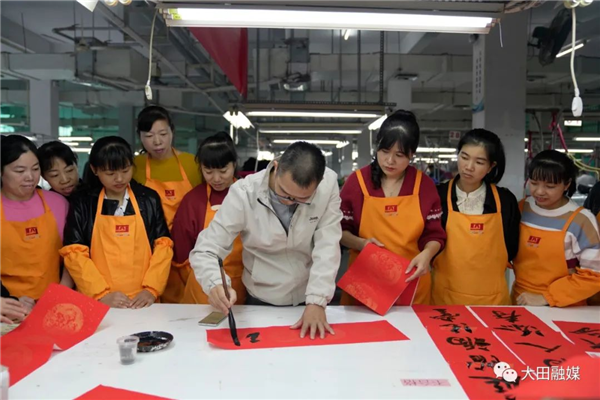近日,大田縣組織志愿服務隊、勞模宣講小分隊、文藝家宣傳小分隊,積極行動,走企業、下鄉鎮與廣大黨員、群眾面對面、心貼心交流將黨的二十大精神送到黨員群眾心坎上。圖為勞模宣講小分隊在外資企業南湖針織時裝有限公司宣講黨的二十大精神。文藝家宣講小分隊成員還現場以書寫、贈送書法作品的形式宣傳黨的二十大精神,受到職工們的熱烈歡迎。