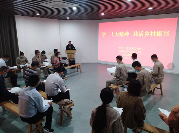 日前,三明市委文明辦在巖前村文明實踐館開展“學習二十大精神、共話鄉村振興”集體研學會,市委文明辦四級調研員王海泉對黨的二十大精神、習近平總書記關于“三農”工作的重要論述部分內容進行闡述解讀,來自國網三明供電公司、巖前鎮鎮政府和巖前村的代表們聽到即入耳,入耳即入心,凝聚奮進力量,推動黨的二十大精神在基層落地生根。