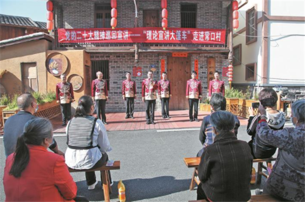 黨的二十大召開后,三明市各新時代文明實踐中心創新形式,組織宣講員深入田間地頭,通過非遺特色宣講、文藝宣講等宣講活動,持續推動黨的二十大精神宣講深入開展,讓黨的二十大精神入腦入心。