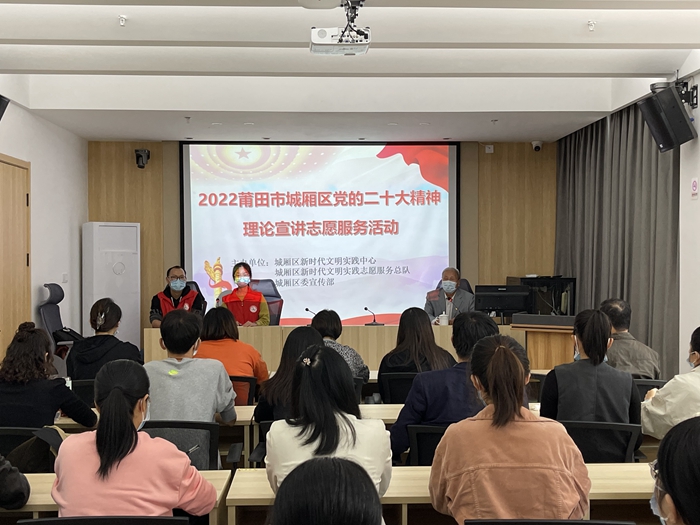 莆田市“理響莆陽”宣講隊、城廂區“理響莆陽·廂音”宣講團成員郭景國圍繞黨的二十大報告,以《黨的二十大開啟現代化強國的新征程》為題,對黨的二十大精神進行了全面系統、深入淺出的講解。城廂區各鎮街及區直機關新時代文明實踐志愿服務隊40余人到場聆聽。