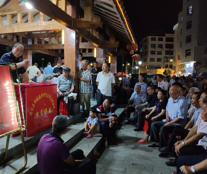 2019年5月,獅城鎮(zhèn)在該鎮(zhèn)新時代文明實(shí)踐所成立“方言評書”志愿服務(wù)隊(duì),由10多名鄉(xiāng)鎮(zhèn)社區(qū)干部、民間評書藝人、退休文藝工作者、黨群志愿者組成,運(yùn)用民間俗諺等口頭語言,以通俗易懂、形象生動的表演,常態(tài)化開展宣講活動。截至目前,志愿服務(wù)隊(duì)已累計(jì)舉辦方言評書專場一百余場,受益群眾8萬多人次,評書專場內(nèi)容包含黨的十九大及十九屆歷次全會精神、二十大精神、習(xí)近平新時代中國特色社會主義思想、掃黑除惡知識、法律法規(guī)、勤儉節(jié)約、移風(fēng)易俗、歷史故事、家風(fēng)家教等。