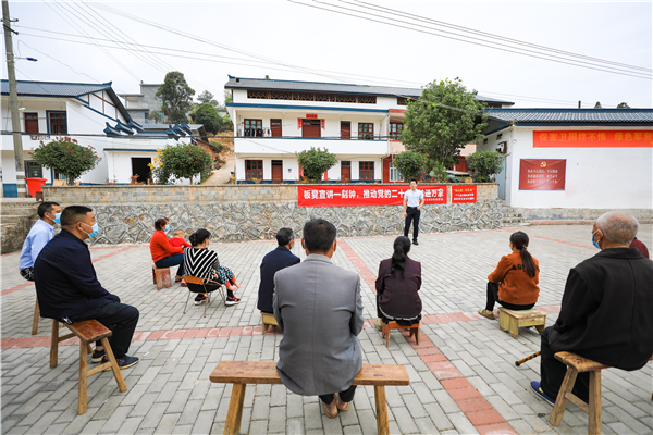 第七屆全國道德模范提名獎獲得者、通汶聯(lián)村黨委書記、半山村黨總支第一書記林上斗為干部群眾宣講黨的二十大精神
