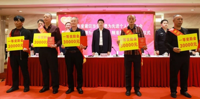 11月30日上午,莆田市舉行見義勇為先進個人表彰大會暨省、市見義勇為者子女助學、精準幫扶資金發放儀式。