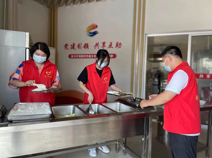 志愿者在“共享食堂”服務(wù)群眾。邱雯禎 攝