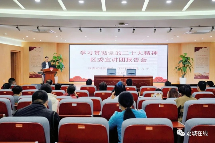 文明風12月9日訊 12月8日,學習貫徹黨的二十大精神區委宣講團宣傳系統專場報告會在荔城區新時代文明實踐中心舉行,荔城區委宣傳部常務副部長林鋒主持會議并講話,區委宣講團成員、區社科聯主席方平作宣講報告。