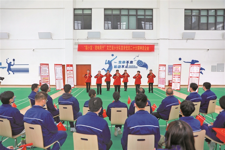 “理響周寧·蒲公英說”宣講小分隊深入周寧縣興達勞保服裝有限公司生產(chǎn)車間,宣講黨的惠民惠企政策;長安社區(qū)、“理響周寧·晚霞說”宣講小分隊聯(lián)合十余家共建單位,創(chuàng)新文藝宣講方式,對群眾開展普法、反邪教、醫(yī)保、防災減災、擁軍優(yōu)屬等十多項宣傳,讓群眾在家門口就能享受服務……一場場聲情并茂、直抵內(nèi)心的宣講,將黨的二十大精神傳遞到千家萬戶。