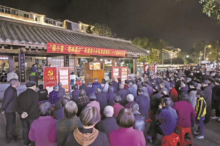 面對面現(xiàn)場宣講,開展“非遺+宣講”“文藝+宣講”等特色宣講……拋去照本宣科,沒有大話套話,“理響周寧”理論宣講輕騎兵深入基層,創(chuàng)新形式、豐富載體,變“固定講臺”為“流動課堂”,講解老百姓最關心的民生實事,把黨的二十大精神宣講內(nèi)容從“高大上”變得“接地氣”,真正讓老百姓坐得住、樂意聽、記得牢。