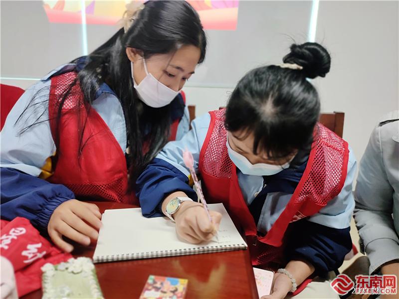 志愿者寫心得(吳麗莉 攝)