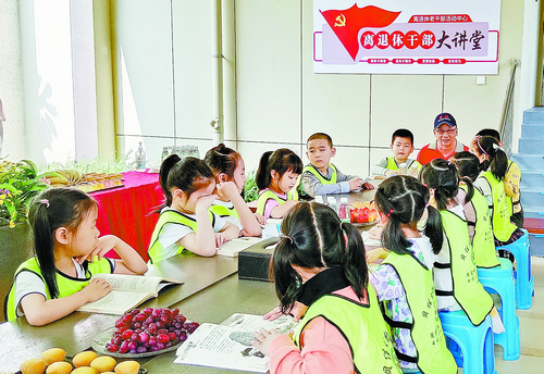 西池社區離退休干部大講堂上,老黨員陳明星為小朋友講愛國故事。(西池社區 供圖)