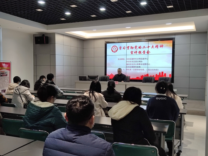 文明風12月19日訊為深入學習貫徹黨的二十大精神,真正做到學深悟透、融會貫通、真信篤行,12月15日,在長樂區新時代文明實踐中心舉辦了一場“學習貫徹黨的二十大精神宣講報告會”。本次活動由長樂區新時代文明實踐中心、長樂區委文明辦、長樂公路事業發展中心、長樂區煙草專賣局主辦。