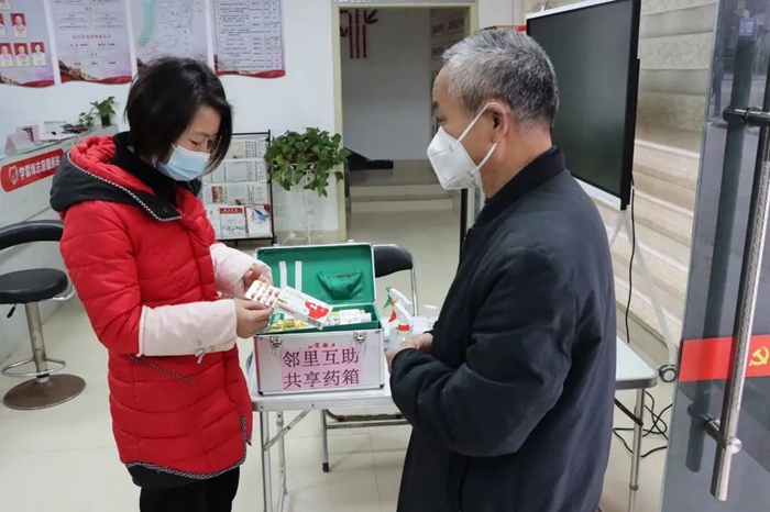 “看到微信群發的分享藥品倡議,我把自己家的藥分享出來,希望可以幫到有需要的人。”當天下午,在了解到許多居民缺少急需的常備藥品后,富興堡街道東霞社區居民陳明義、王言岷、牛寶蘭響應號召,自發拿上家中富余的常用藥交給社區副書記鄭明芹,統一放入社區的“鄰里互助共享藥箱”中,期盼能夠讓有需要的人獲得幫助。