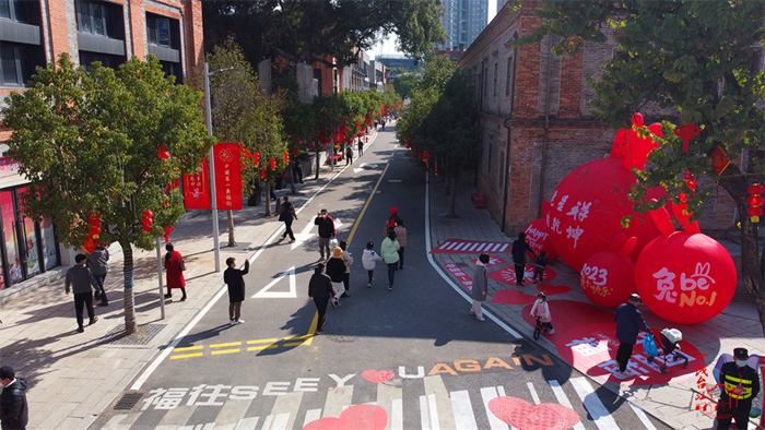 文明風1月10日訊 1月6日,以“福地賦新 時啟未來”為主題,全國首個“福”文化主題街區在臺江正式開街。
