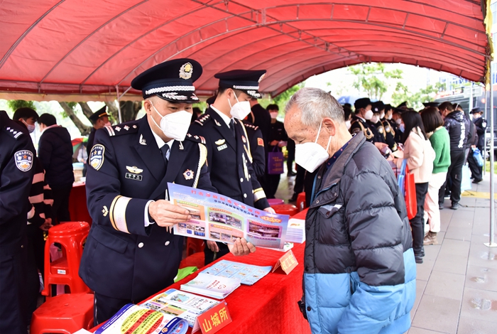 活動現場,民警通過展板展示、現場解答、發(fā)放資料、警民互動等方式,圍繞群眾關心的民生熱點、立足急難愁盼問題為群眾耐心解答,并向群眾大力宣傳禁毒、防騙、防盜、交通安全等相關知識,進一步提高廣大群眾的自我防范和自我保護意識。