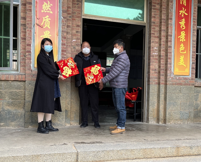 活動中,志愿者們來到村民家中,為村民們送上一幅幅火紅的春聯和一張張吉祥的“福”字,祝福他們身體健康、闔家歡樂,拿到“福”字和春聯的村民們臉上露出開心的笑容,紛紛表示感謝。交談中,志愿者還向村民們發放煙花爆竹禁止燃放的政策和規定、文明餐桌、文明祭祀等宣傳單、宣傳冊,呼吁大家自覺遵守禁放規定,引導大家以文明、科學、健康的生活方式過節儉樸素的春節。