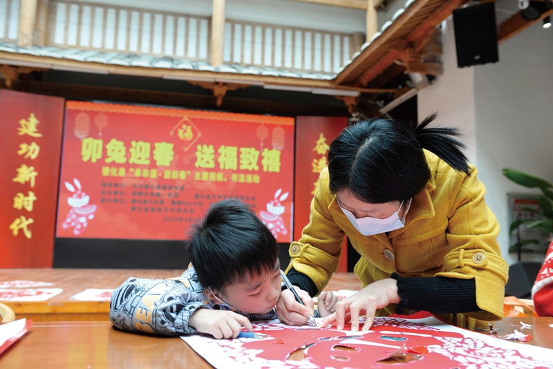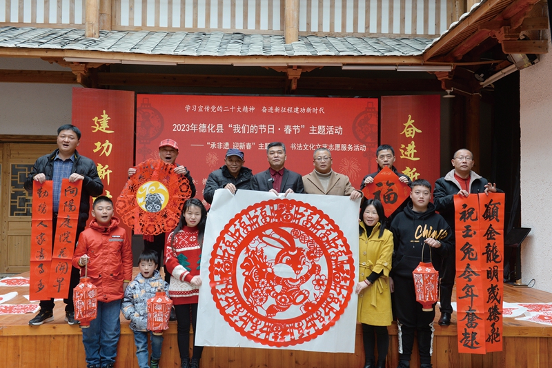 活動中,楊梅鄉云溪村民間藝人、德化縣剪紙協會會員運用泉州市非物質文化遺產——云溪刻紙技藝,在精心準備好的各種“福”字窗花圖樣上精細鐫刻,通過疊、畫、剪、刻、粘等一系列技法下來,一副副精美窗花逐漸成型,有“福”字燈籠、“春”字鞭炮、“兔”形福娃……畫面精美,內容豐富,寓意祥和,展現出瓷都德化人民激情高昂、積極向上的精神面貌,表達了對嶄新一年的美好愿景、幸福生活的殷殷期盼,也體現了云溪刻紙技藝融入傳統節日與日常生活的創造性轉化和創新性應用。(瓷都德化 吳有森 林榮臻)