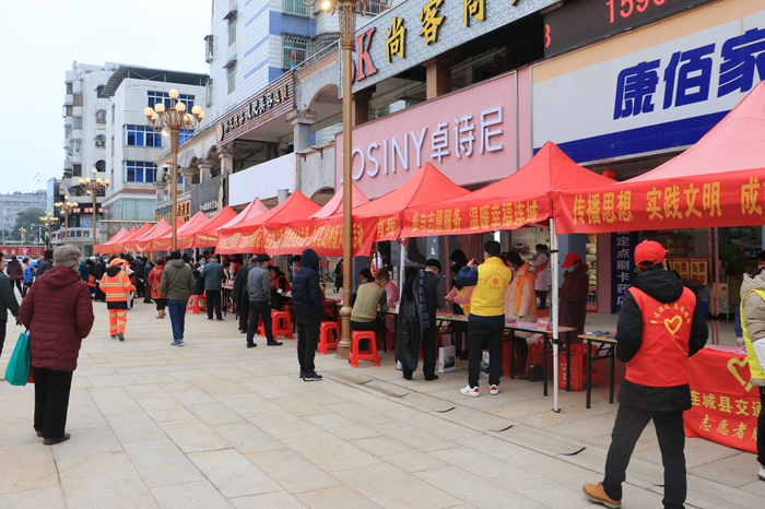 隨后,全縣50多支新時代文明實踐志愿服務隊開展“平安迎福”“健康迎福”“翰墨迎福”“愛心迎福”等系列主題志愿服務活動,向過往群眾提供維權咨詢、禁毒禁賭、反電信詐騙、移風易俗、創城知識、急救知識、義診義剪、義務寫春聯等志愿服務活動,深受廣大群眾好評。