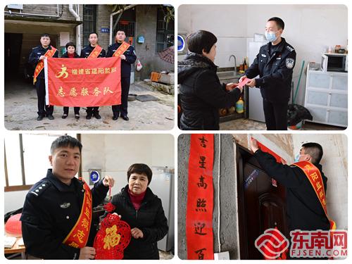1月19日,建陽監獄志愿者來到共建社區的貧困戶和孤寡老人家中,為他們送上慰問金、貼春聯迎新春,“送福到家”,一幅幅飽含年味的祝福話語寄托著志愿者們的美好祝愿,讓每一位貧困群眾、孤寡老人都感受到社會的溫暖。