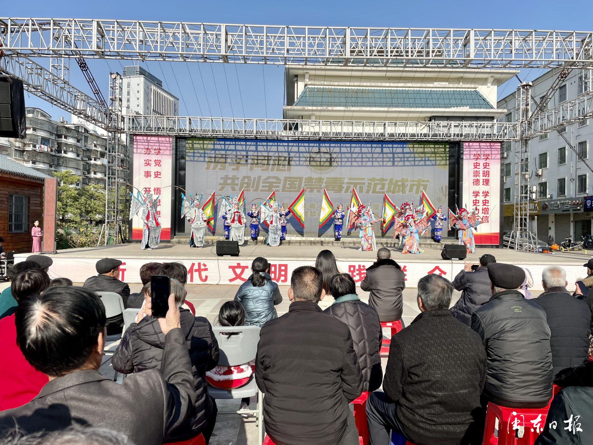 1月29日下午,寧德市區(qū)的蘭亭社區(qū)格外熱鬧。由寧德市首屆禁毒先鋒——壽寧北路戲保護(hù)傳承中心帶來的原創(chuàng)禁毒劇目《亮禁毒利劍,守幸福家園》正在百姓大舞臺上精彩上演,吸引了眾多居民前往觀看。