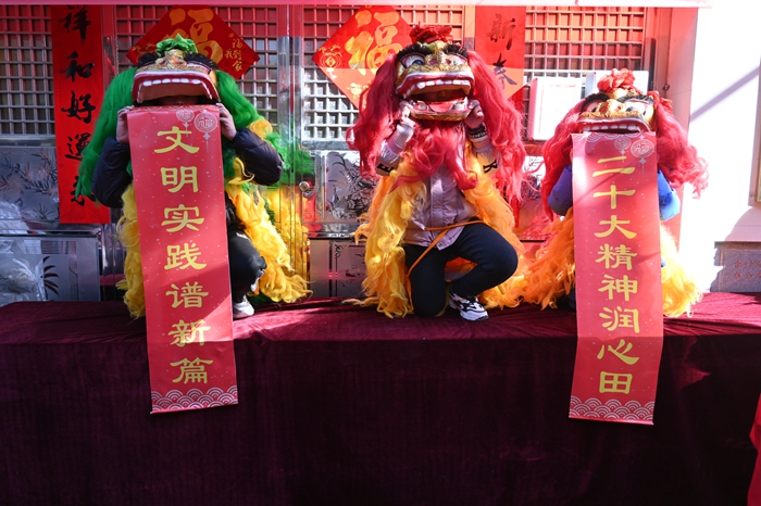 隨后,為進一步讓群眾直觀感受傳統文化魅力,在志愿者們的協助下,130名群眾依次體驗了北獅魅力。