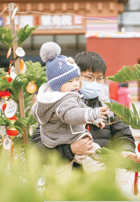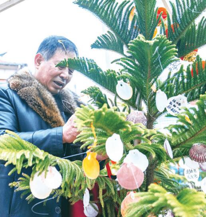 有得看,也有得體驗。新春期間,在平潭臺灣小鎮,新裝置點“福貝題字”是小鎮的網紅打卡地。現場,23棵福樹代表了2023年,擺放形式從空中看形成“春”字,而吊綴的扇貝也有2035片,可供市民手寫祝福語。綠蔭叢中,一串串寫滿祝福的貝殼在風中碰撞,發出“唰唰刷”的聲響,“2035年坐動車去臺灣”“新年吉祥,吉兔納福”……美好的祝福,承載著市民對新年幸福生活的美好祝愿。