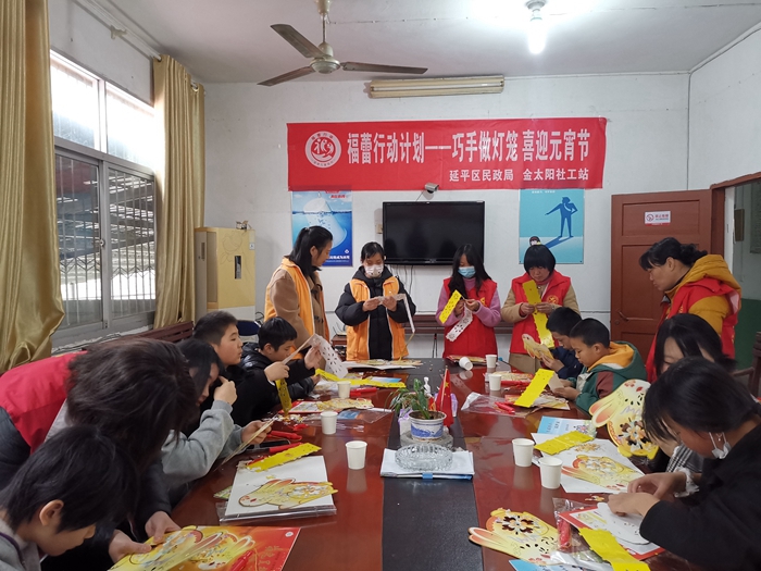 夏道鎮新時代文明實踐所聯合金太陽社工站在徐洋村開展“巧手做燈籠,喜迎元宵節”活動。陳銀銀 攝