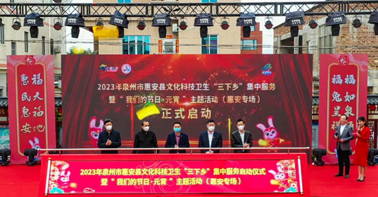 隨著與會領導嘉賓共同推桿,金色禮花漫天綻放,2023年泉州市惠安縣文化科技衛生“三下鄉”集中服務暨“我們的節日?元宵”主題活動(惠安專場)正式啟動。