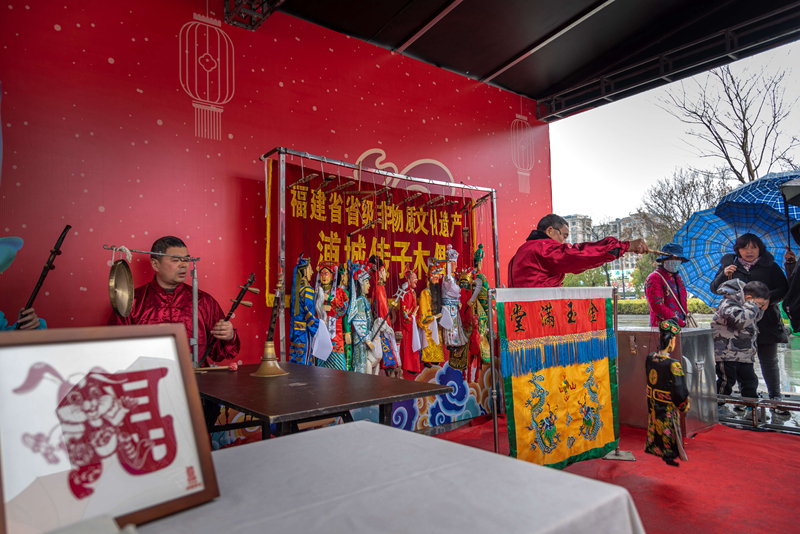 活動現(xiàn)場還舉行了美食活動和民俗活動。在美食展示區(qū),來自浦城各酒店的廚師們,為大家?guī)砣庋唷⒍垢?、酸棗糕、燈盞糕等浦城特色小吃,讓大家感受舌尖上的浦城。在民俗展示區(qū),為大家準備了剪紙、提線木偶、燈謎、漢服展演以及元宵猜燈謎活動。