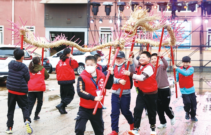 隨后,海峽兩岸共度元宵佳節(jié)主題晚會上演,舞蹈、舞獅以及歌唱節(jié)目吸引了眾多村民冒雨前來觀看。內(nèi)湖村的小朋友紛紛提著燈籠走上舞臺向大家祝福問好。