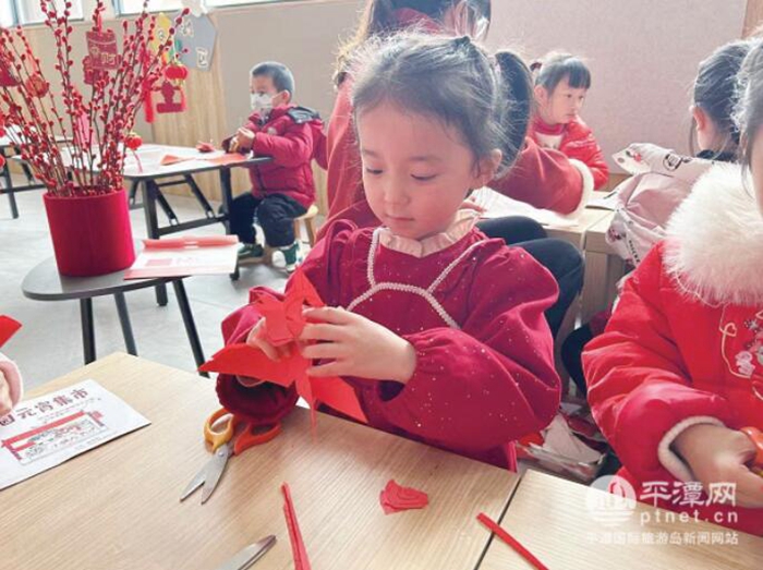 “知道為什么要做燈籠嗎?”“因?yàn)樵?jié)要掛燈籠慶祝!”小朋友施旭堯說(shuō),并拿著自己剛做好的手工燈籠和同學(xué)們合影,笑得眼睛都瞇了起來(lái)。9日,平潭西航第一幼兒園同樣以慶元宵為開(kāi)學(xué)基調(diào),開(kāi)展了以“尋味年俗,童趣匯集”為題的元宵集市,剪窗花、葫蘆畫(huà)、捏泥人、做團(tuán)扇、制年宵花、拓印春聯(lián)、詩(shī)歌話元宵……各式各樣的傳統(tǒng)文化項(xiàng)目讓集市活動(dòng)更加豐富立體,滿足幼兒們的藝術(shù)需求。值得一提的是,平潭西航第一幼兒園的剪窗花項(xiàng)目由中國(guó)民間剪紙藝術(shù)傳承者林美英老師親自指導(dǎo),備受小朋友們的青睞。