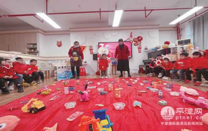 在平潭如意幼兒園,大家一起參加猜燈謎活動(dòng)。