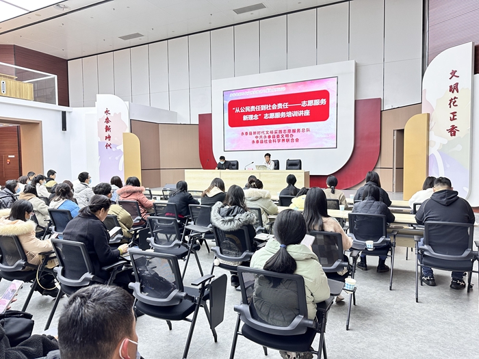 吳燕丹教授作《從公民責(zé)任到社會(huì)責(zé)任——志愿服務(wù)新理念》專(zhuān)題講座(永泰縣文明辦供圖)