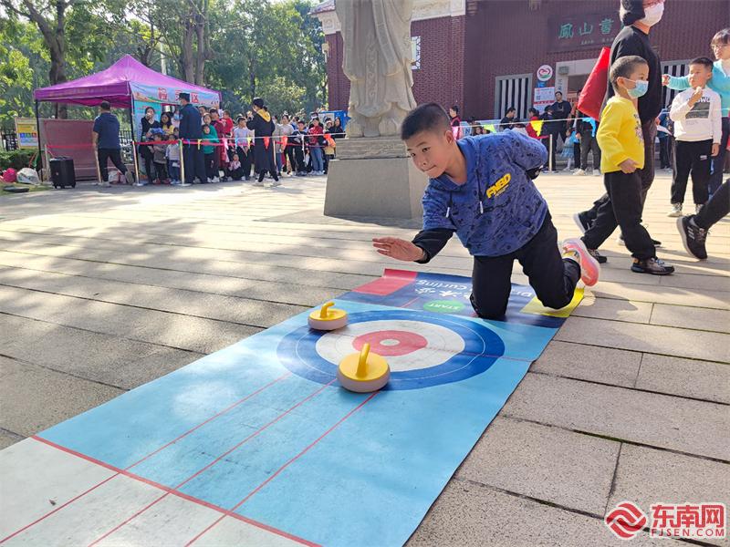 社區(qū)運動會——小朋友體驗旱地冰壺(黃莊社區(qū)新時代文明實踐站供圖)