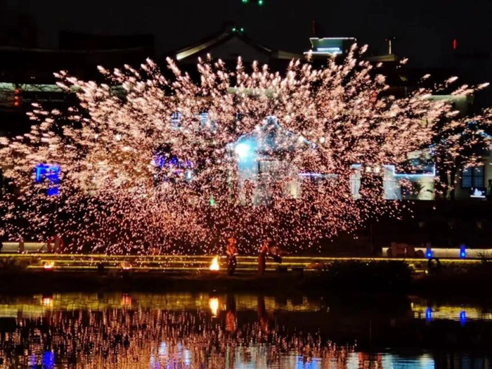 當北方非遺走進閩南水鄉,會碰撞出怎樣的精彩火花?夜幕降臨時,閩南水鄉早已是人潮涌動。超1600°的鐵水剎那間騰空,千千萬萬朵金花瞬間怒放點燃夜空,靜靜流淌的河水倒映出點點星光,在星輝斑斕里放歌,流光溢彩的火花裝飾了閩南風情,點綴了水鄉古韻,讓人嘆為觀止。