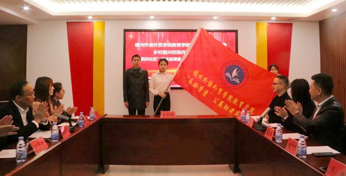 2月25日上午,福州外語外貿學院教育學院與長樂區吳航街道鄉村振興校地共建簽約授牌暨西關“周末益課堂”“樂齡學堂”啟動儀式在吳航街道西關社區舉行。活動中,福州外語外貿學院教育學院學院與吳航街道進行簽約,相關領導為大學生社會實踐基地、“服務-學習”研究實踐基地、西關社區“周末益課堂”“樂齡學堂”項目實踐基地授牌,并為“樂齡學堂”公益助老實踐隊授旗。