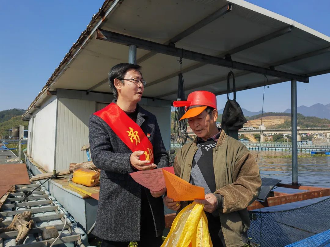當天,迎著習習江風,宣講隊伍來到古田縣黃田閩江邊,走上漁排,將黨的二十大精神與當前漁業工作相結合,用鮮活的例子、生動的講解,以通俗易懂的語言,將黨的二十大報告精神傳達到基層群眾的心中。