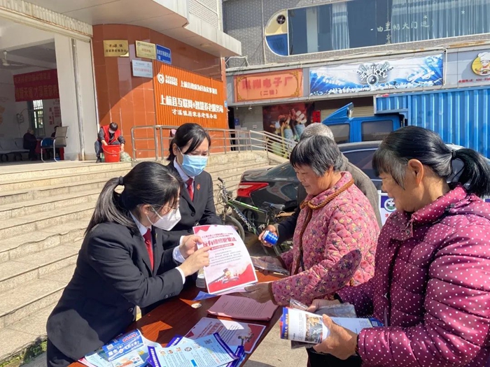 干警們在集鎮(zhèn)“圩頭”支起“普法攤”,擺放著宣傳展板,向過往村民發(fā)放普法畫冊、贈送暖心禮包、宣傳法律知識,著重普及危險駕駛、毒品、電信詐騙、非法集資等犯罪的表現(xiàn)形式、社會危害、法律后果等,并耐心解答村民普遍關(guān)心的法律問題,鼓勵與家人分享法律知識和法治故事。
