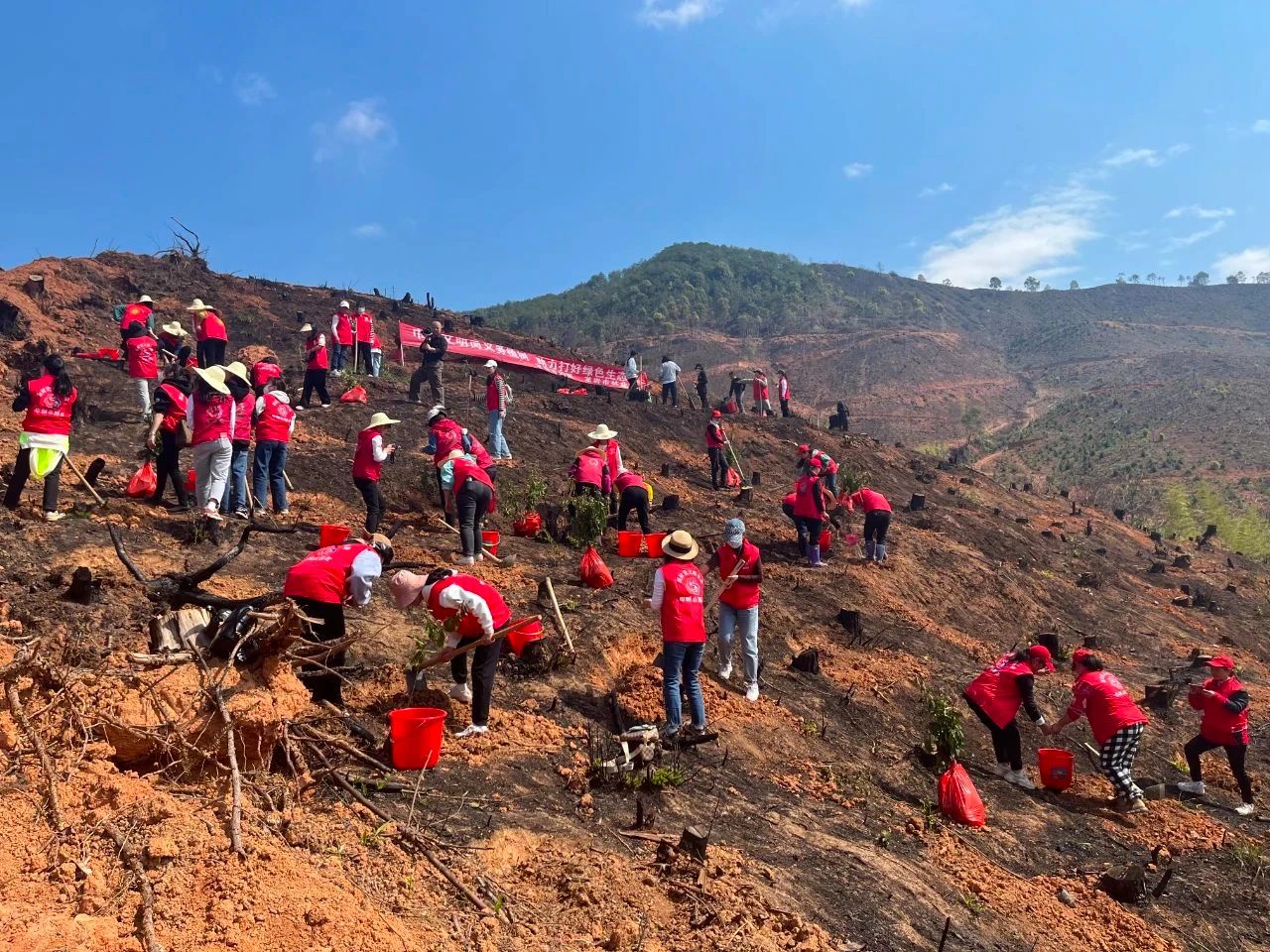龍巖市婦聯巾幗文明崗和巾幗志愿者來到武平縣萬安鎮下鎮村長坑里山場——武平縣國土綠化暨松林改造提升示范點,揮鋤挖土、扶正樹苗、踩緊壓實、提桶澆灌……栽下一棵棵木荷、楓香、觀光木等鄉土樹種,在山場留下一抹巾幗紅,一片大地綠。