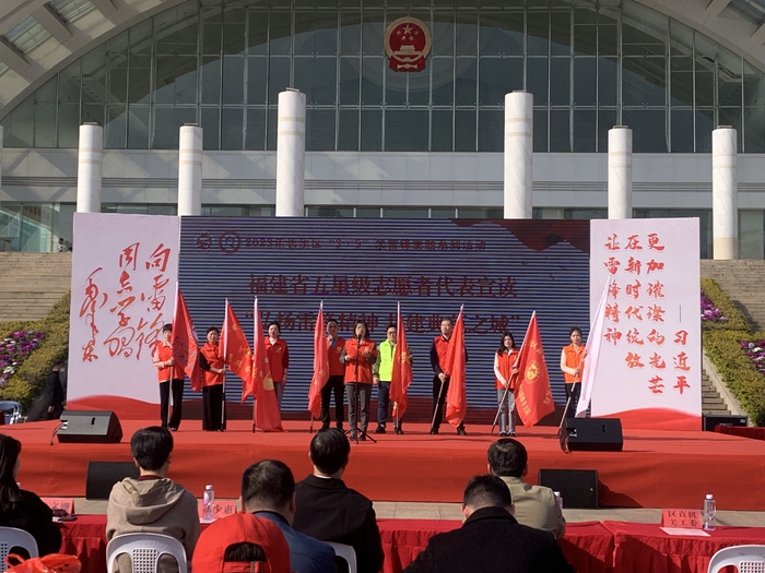 現場,福建省五星級志愿者代表宣讀“弘揚雷鋒精神 共建典范之城”倡議書,呼吁大家行動起來,弘揚“奉獻、友愛、互助、進步”的志愿服務精神,立足新時代,展現新作為,共同書寫新時代的雷鋒故事!