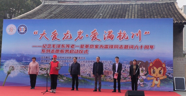 志愿者代表龔松連向全縣人民發(fā)出“弘揚(yáng)雷鋒精神?建設(shè)大愛龍巖”倡議書