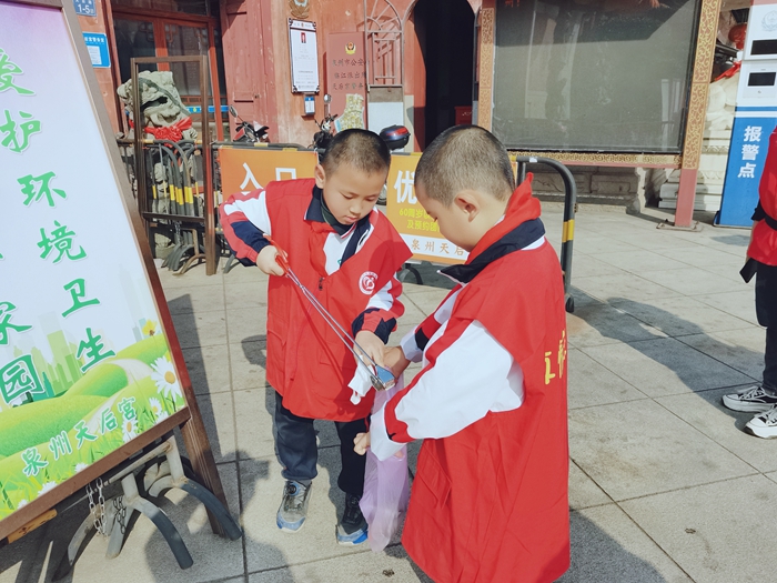 泉州市晉光小學東海校區向日葵中隊開展公益志愿撿拾垃圾活動