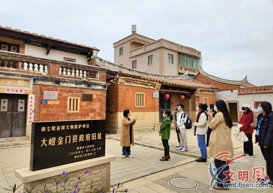 近日,田墘社區(qū)新時(shí)代文明實(shí)踐站開展“探尋革命舊址 追尋紅色記憶”活動(dòng)。“1937年10 月,日本侵略軍占領(lǐng)金門島。1938年初,金門縣政府遷至大嶝借此處民居辦公,直至抗戰(zhàn)勝利后遷回。”解說員鄭阿萍帶領(lǐng)大家探訪金門縣政府舊址,講述革命歷史故事。這片古厝建筑群至今仍基本保留完好,是兩岸同胞共同抗日的重要史跡。