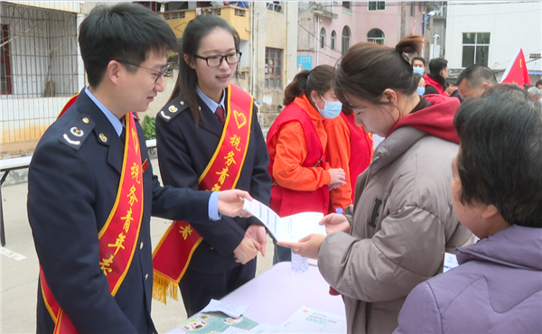 將樂縣稅務局志愿者們向來往居民派發稅收優惠宣傳資料,開展稅費政策宣傳輔導,重點講解個人所得稅年度匯算清繳等方面的政策內容,并進行“一對一”解讀。
