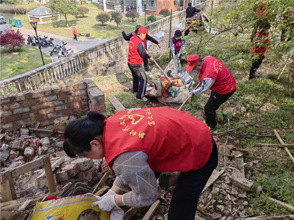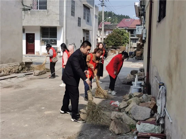 三明市人民檢察院青年干警到沙縣區南陽鄉大基村開展送法進鄉村、美化鄉村環境等一系列學雷鋒志愿服務活動。圖為志愿者們在村主干道周邊集中清理生活垃圾。