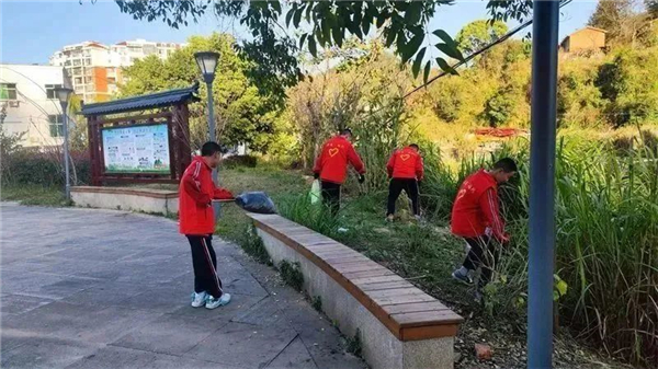 三明六中組織師生參加瑞云社區開展的“認領一塊綠地”志愿服務活動,清理陳大鎮禁毒主題公園垃圾和雜草,清潔公共設施。
