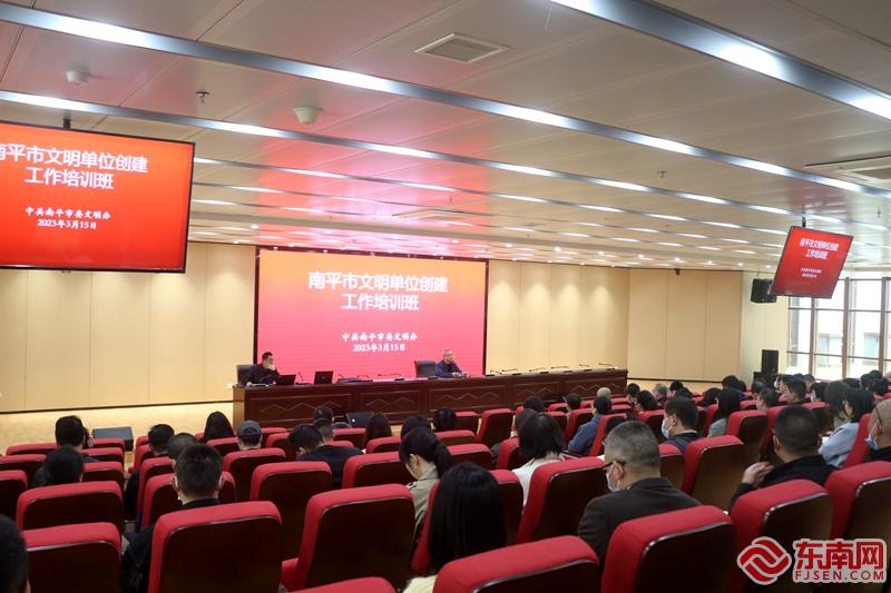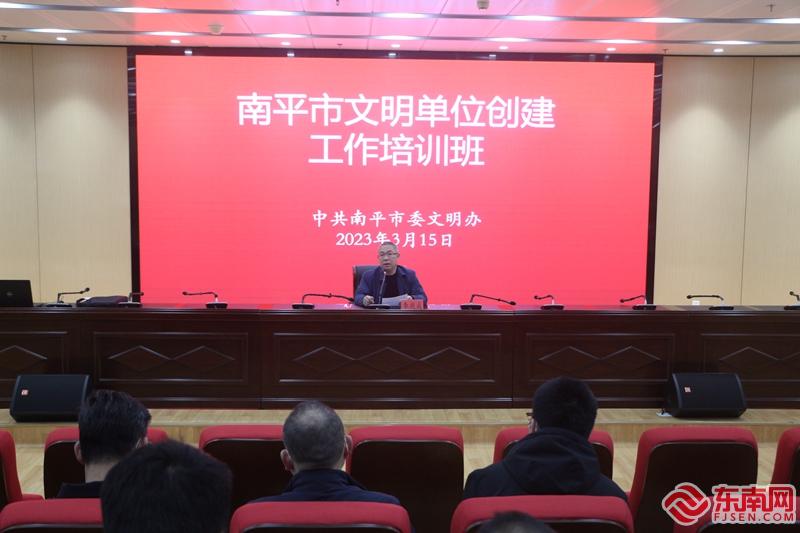 文明風3月16日訊 為有效鞏固全市各級文明單位創建成果,提升創建工作水平,3月15日上午,南平市委文明辦舉辦2023年省級以上文明單位創建工作培訓會,市直文明創建單位及各縣(市、區)委文明辦創建負責同志160余人參加培訓。會議由南平市委文明辦副主任李兆成主持。