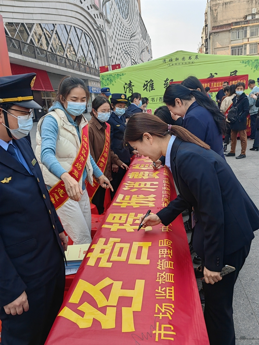 活動現場,各部門現場搭起宣傳臺,接受消費者咨詢,全方位、多角度地向轄區居民和商戶宣傳食品、藥品、特種設備、產品質量等相關法律法規和安全消費科普讀本,宣傳“食安創城”工作動態和應知應會常識,共發放宣傳材料800多份,接受咨詢163人次,進一步提高廣大市民的消費維權意識。同時,區市場監管局、區消委會還組織水韻城內的經營者開展“誠信經營商戶簽字”儀式,宣傳相關法律法規,督促引導經營者落實主體責任,誠信規范經營,以誠信和質量贏得效益、贏得口碑。
