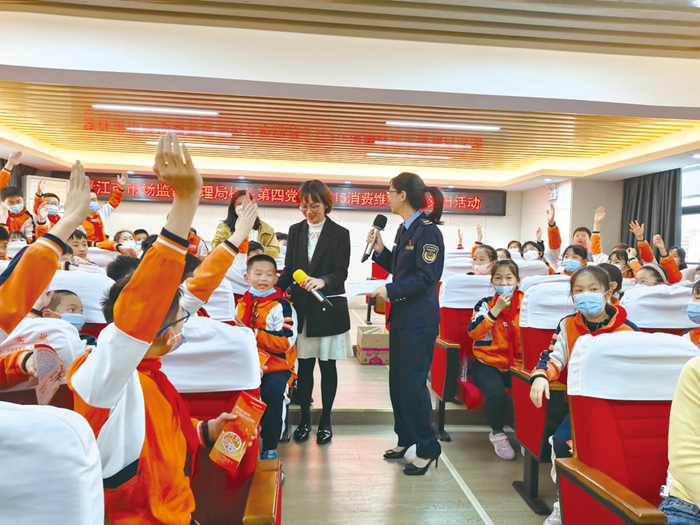 3月15日下午,晉江市市場監督管理局走進晉江市第二實驗小學曉聰校區,開展“小手拉大手”送法進校園宣傳活動,為學生們帶來一場精彩的食品安全教育及法治講座。圍繞食品安全、反食品浪費法、理性消費合法維權等內容,幫助學校師生學習食品安全知識,避免食物浪費,提高消費維權能力,正確維護自身合法權益。